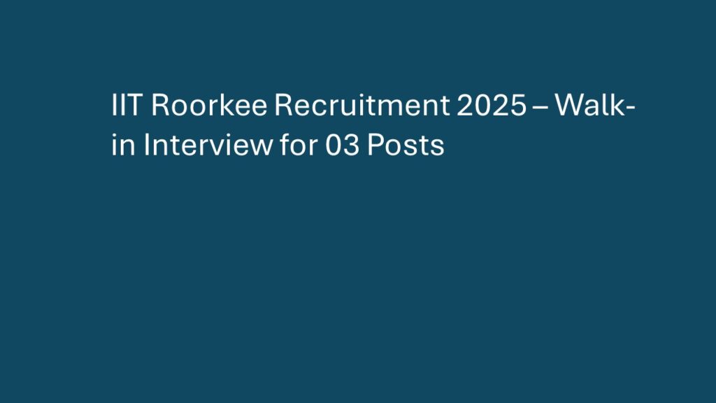 Organization: Indian Institute of Technology Roorkee (IIT Roorkee) Total Vacancies: 03 Posts Post Type: Project Fellow, Project Attendant (Field Assistant),