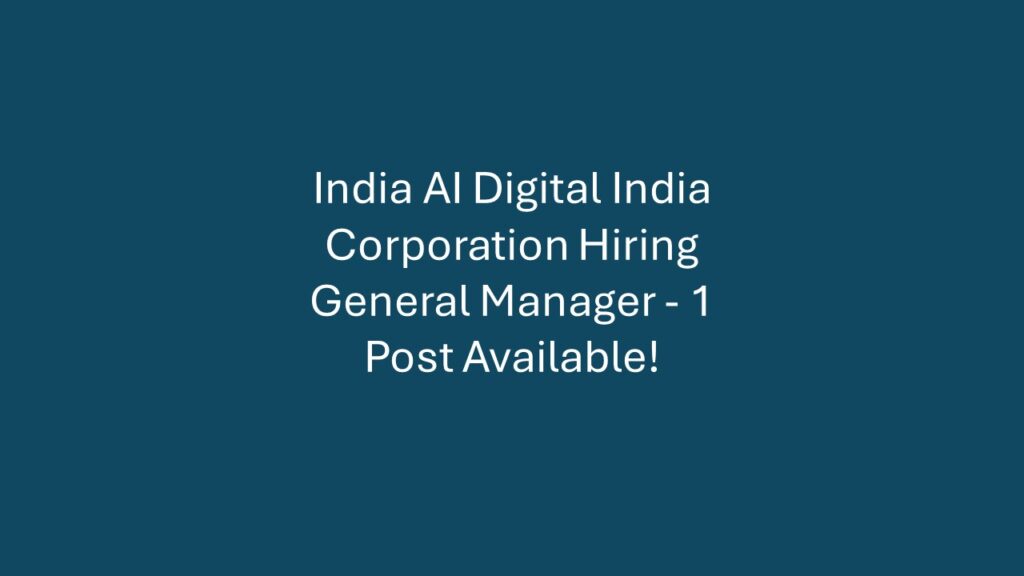 Overview India AI Digital India Corporation (DIC) is inviting applications for the position of General Manager to strengthen their tech […]