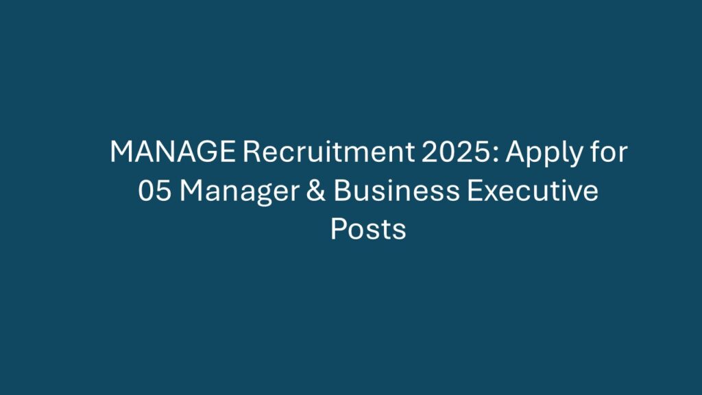 The National Institute of Agricultural Extension Management (MANAGE) invites applications from qualified professionals for Manager and Business Executive positions on