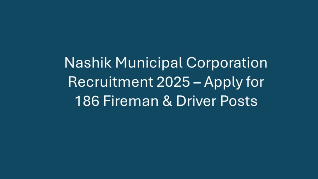 Nashik Municipal Corporation (NMC) has announced a golden opportunity for job seekers! The corporation is hiring 186 candidates for Fireman