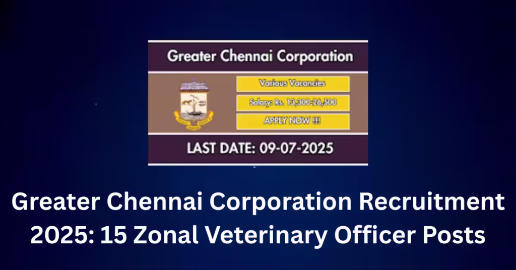 Overview The Greater Chennai Corporation has announced recruitment for Zonal Veterinary Officer positions across various zones in Chennai. This is