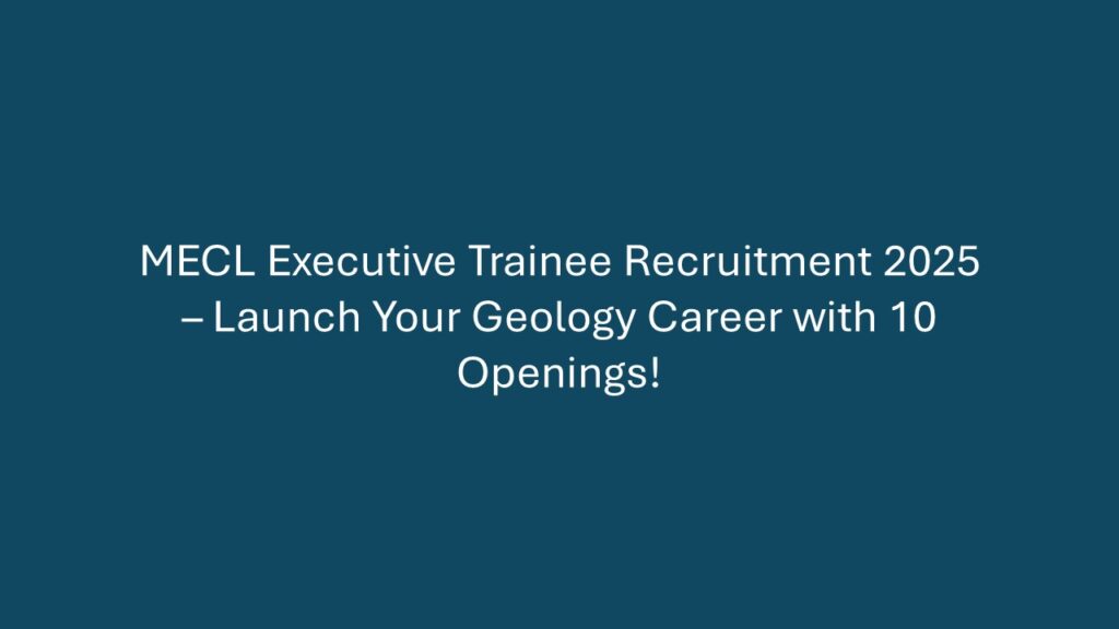 Overview Mineral Exploration and Consultancy Limited (MECL), a prestigious PSU under the Ministry of Mines, is hiring talented geophysicists for