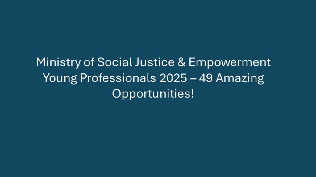 Overview The Ministry of Social Justice and Empowerment is on a mission to bring fresh talent into India’s social welfare