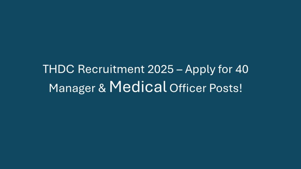 Overview Tehri Hydro Development Corporation (THDC), a leading energy company, is hiring qualified professionals for management and medical positions. This