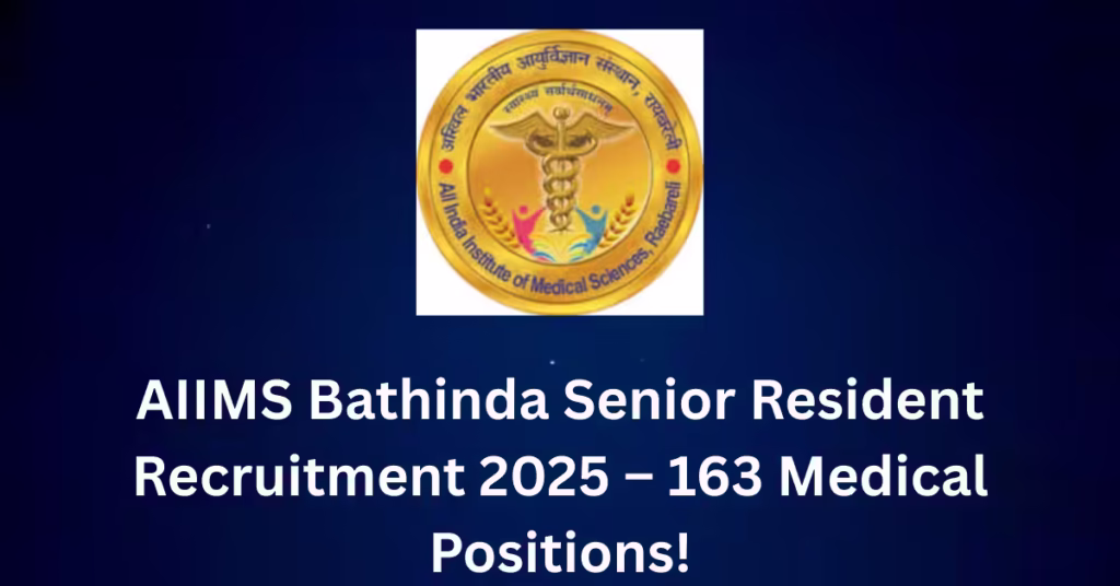 Overview All India Institute of Medical Sciences (AIIMS) Bathinda is recruiting for 163 Senior Resident positions across 41 medical and