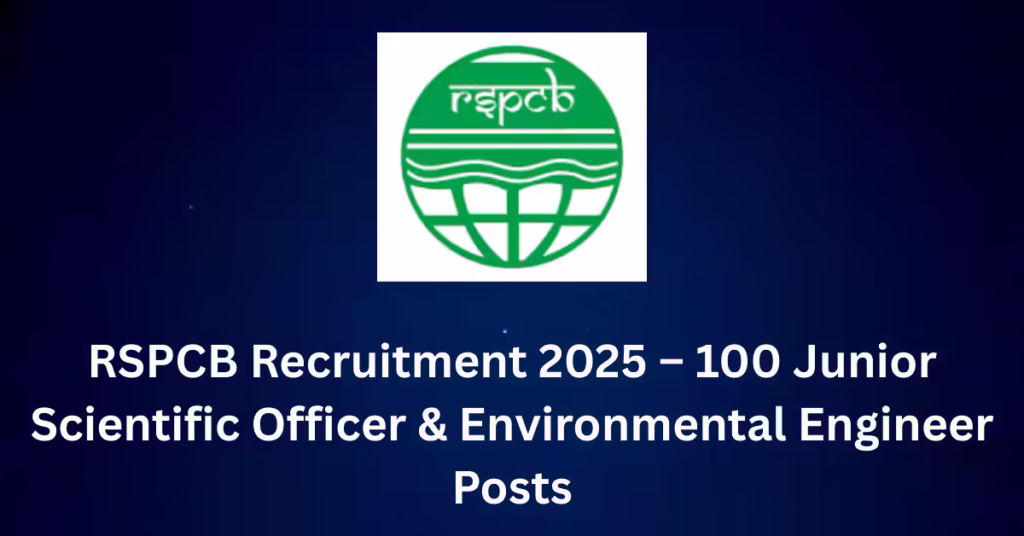Overview The Rajasthan State Pollution Control Board (RSPCB) is hiring 100 professionals for Junior Scientific Officer and Junior Environmental Engineer