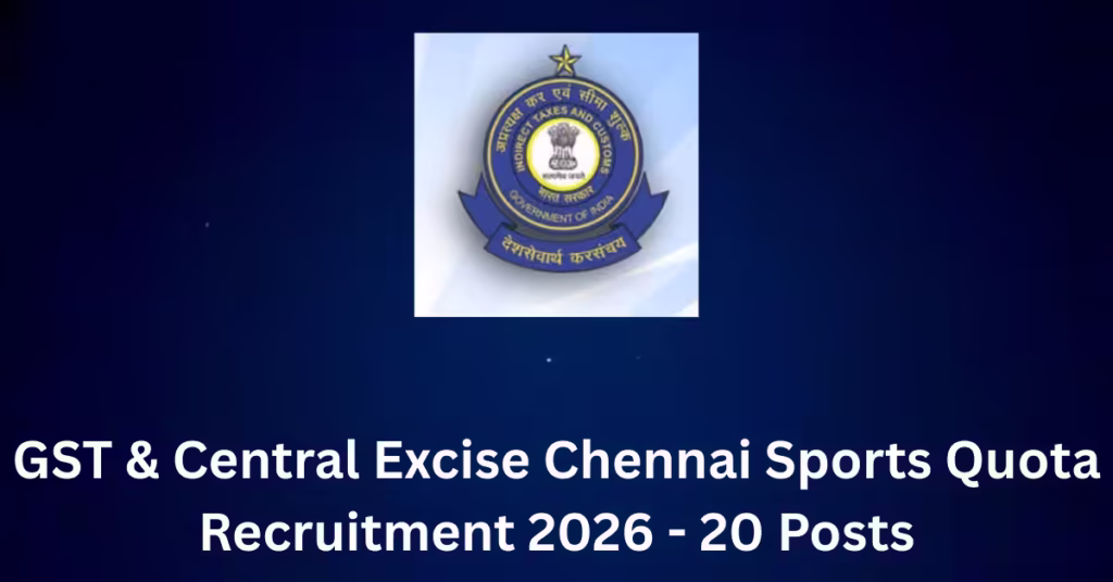 Overview The Commissioner of GST and Central Excise, Chennai is inviting sports persons to apply for 20 government positions through