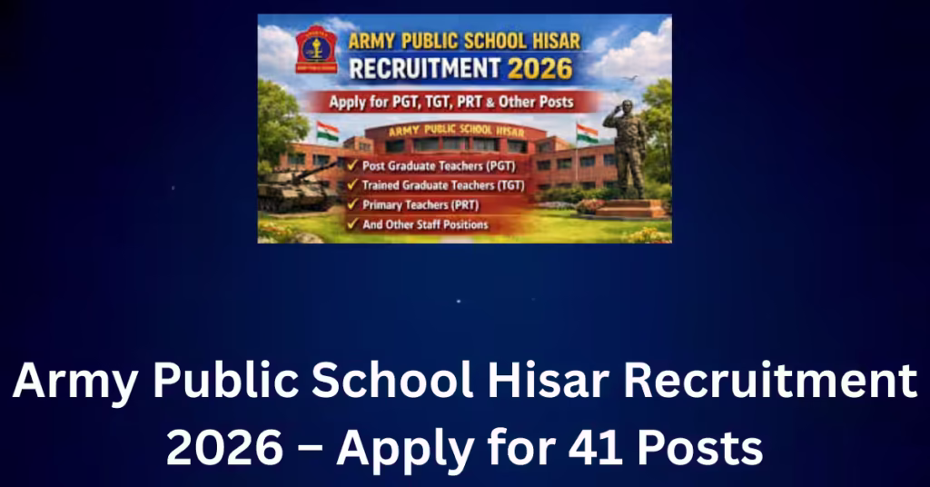 Overview Army Public School Hisar invites applications from eligible candidates for 41 vacant positions across teaching, non-teaching, administration, and support
