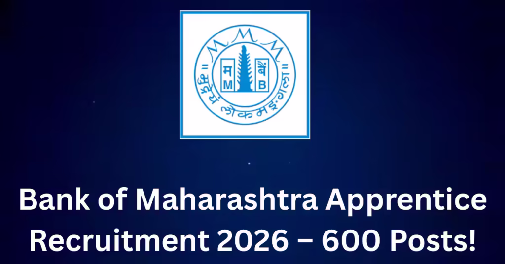 Overview Bank of Maharashtra is inviting applications from eligible candidates for recruitment to 600 Apprentice positions. This is a golden