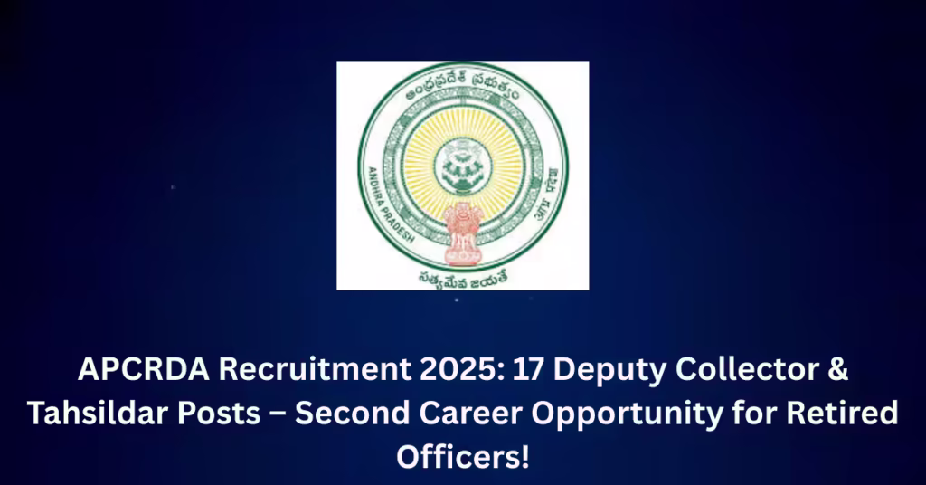 APCRDA Recruitment 2025: 17 Deputy Collector & Tahsildar Posts – Second Career Opportunity for Retired Officers!
