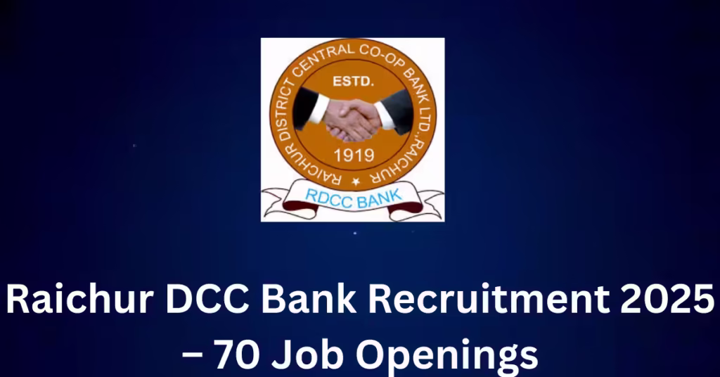 Overview Raichur and Koppal District Central Co-operative Bank is hiring 70 candidates for various positions including Branch Manager, Assistant, and