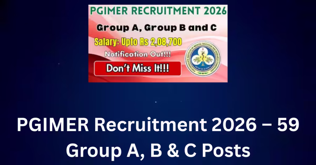 Overview The Postgraduate Institute of Medical Education and Research (PGIMER), Chandigarh is hiring for 59 government positions across Group A,