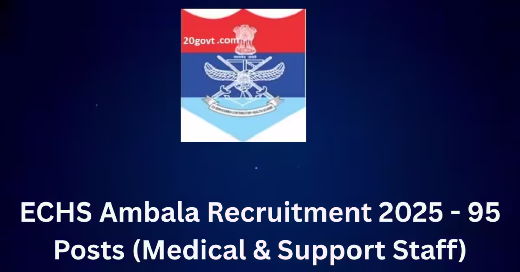 Overview The Ex-Servicemen Contributory Health Scheme (ECHS) Ambala Cantonment has announced a major recruitment drive for 95 contractual positions across