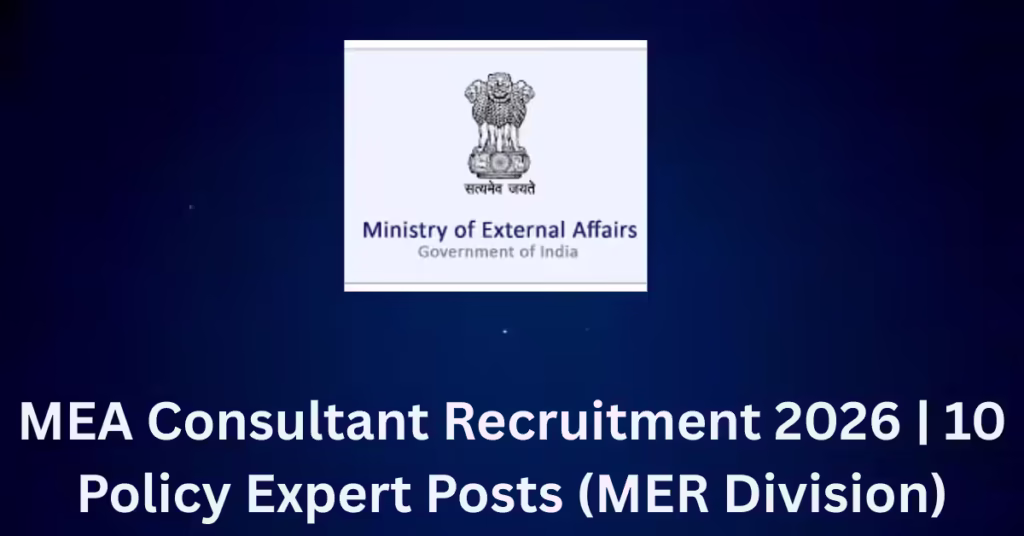 Overview The Ministry of External Affairs (MEA), Government of India, is inviting applications from eligible professionals to fill 10 Consultant