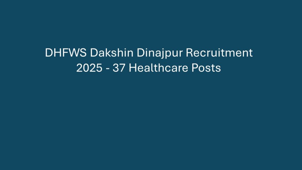 Overview The District Health and Family Welfare Samiti (DHFWS) of Dakshin Dinajpur is hiring dedicated healthcare professionals to strengthen the