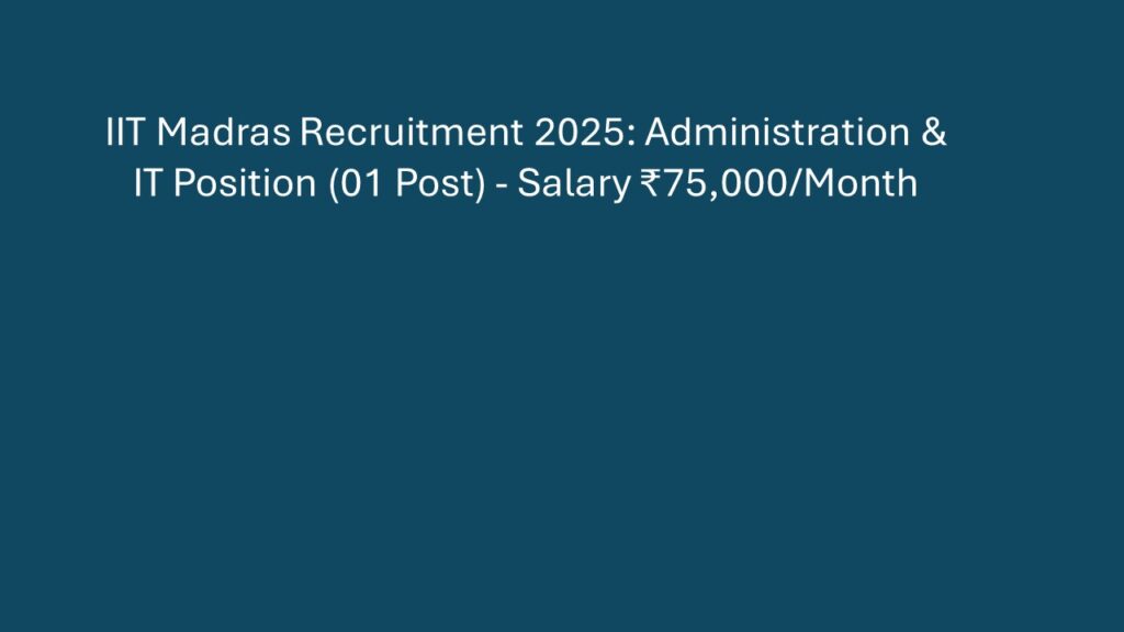 Overview Organization: Indian Institute of Technology Madras (IIT Madras) Total Vacancies: 01 Post Post Name: Administration and IT Job Type: