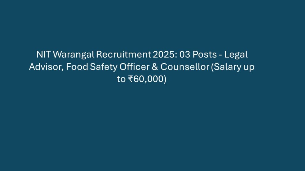 Overview Organization: National Institute of Technology Warangal (NIT Warangal) Total Vacancies: 03 Posts Post Type: Visiting Consultant, Food Safety Officer,