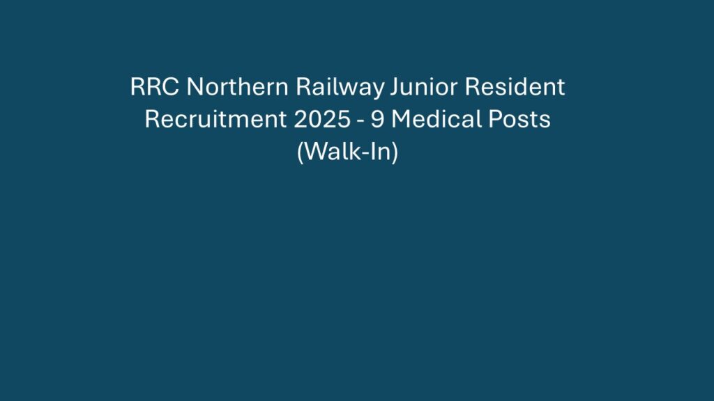 Overview Railway Recruitment Cell Northern Railway (RRC Northern Railway) is hiring dedicated doctors to work as Junior Residents at railway