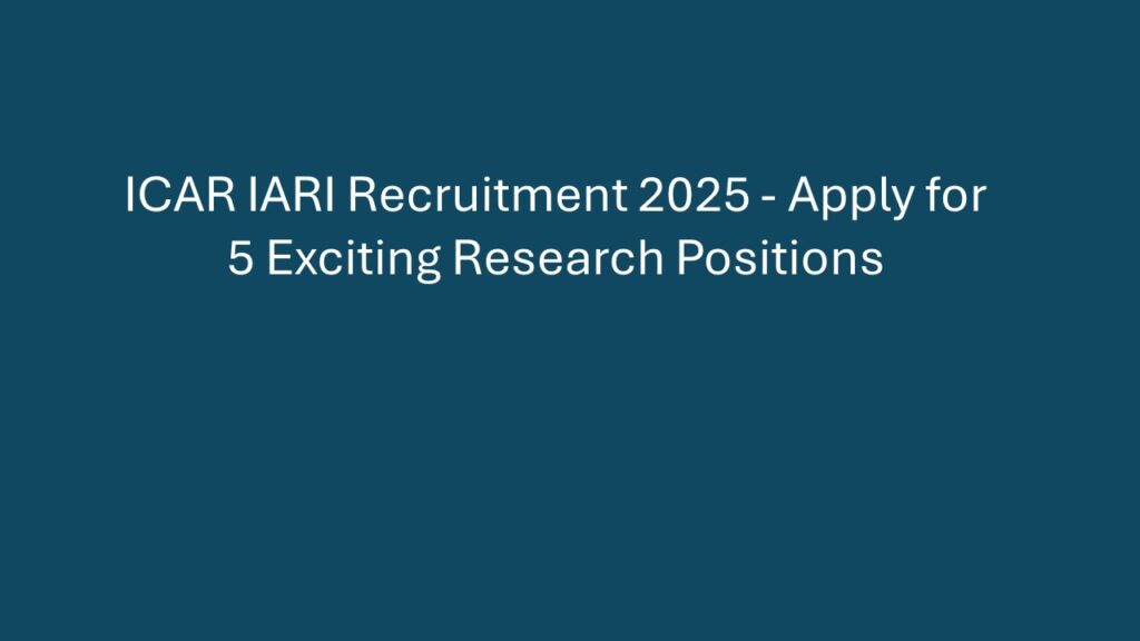 Overview The Indian Agricultural Research Institute (ICAR IARI), one of India’s premier agricultural research organizations, is hiring talented professionals for