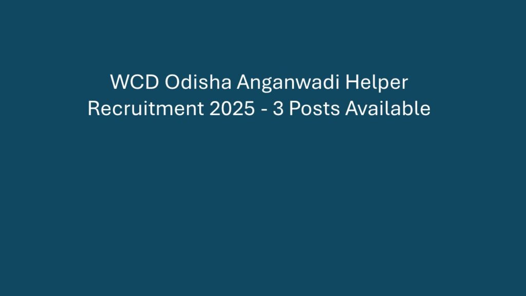 Overview The Women and Child Development Department of Odisha is hiring dedicated Anganwadi Helpers to support childcare and nutrition programs