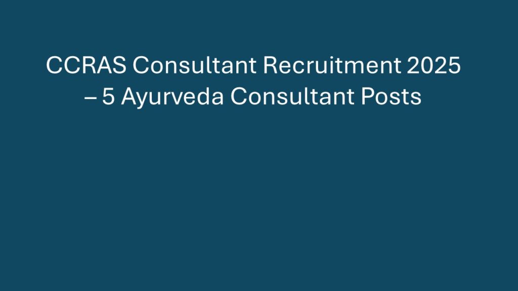 Overview The Central Council for Research in Ayurvedic Sciences (CCRAS), a prestigious government research organization, is conducting a walk-in recruitment