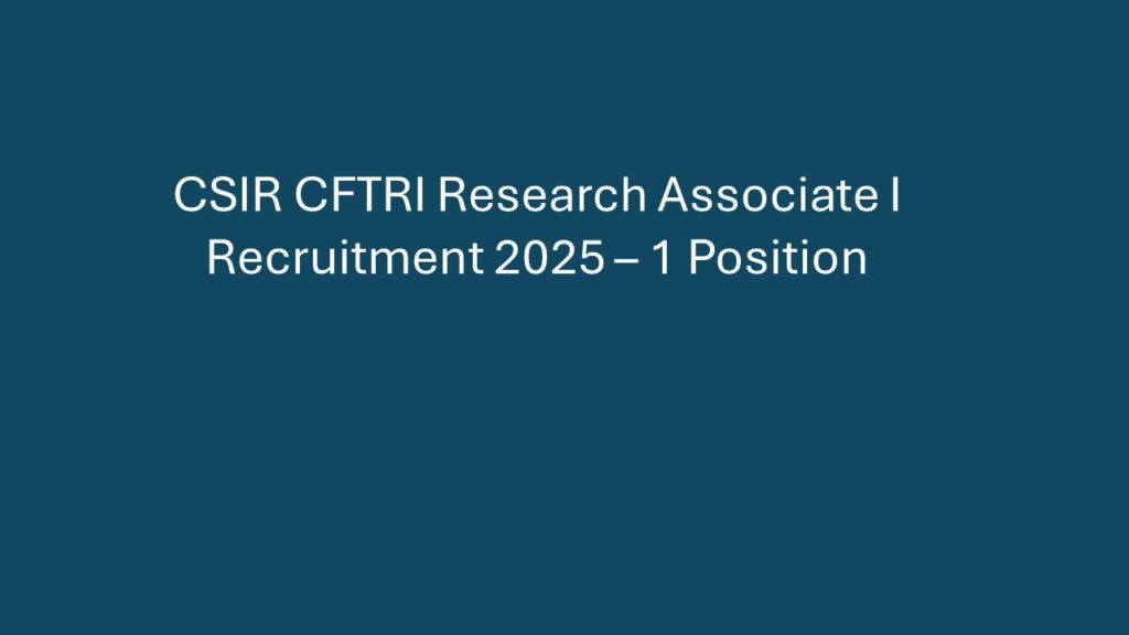 CSIR CFTRI Research Associate I Recruitment 2025 – 1 Position
