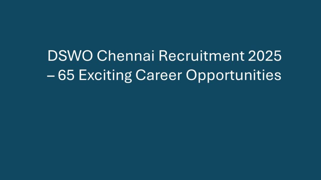 Overview The District Social Welfare Office (DSWO) Chennai is recruiting talented professionals to join their team across multiple departments. Whether
