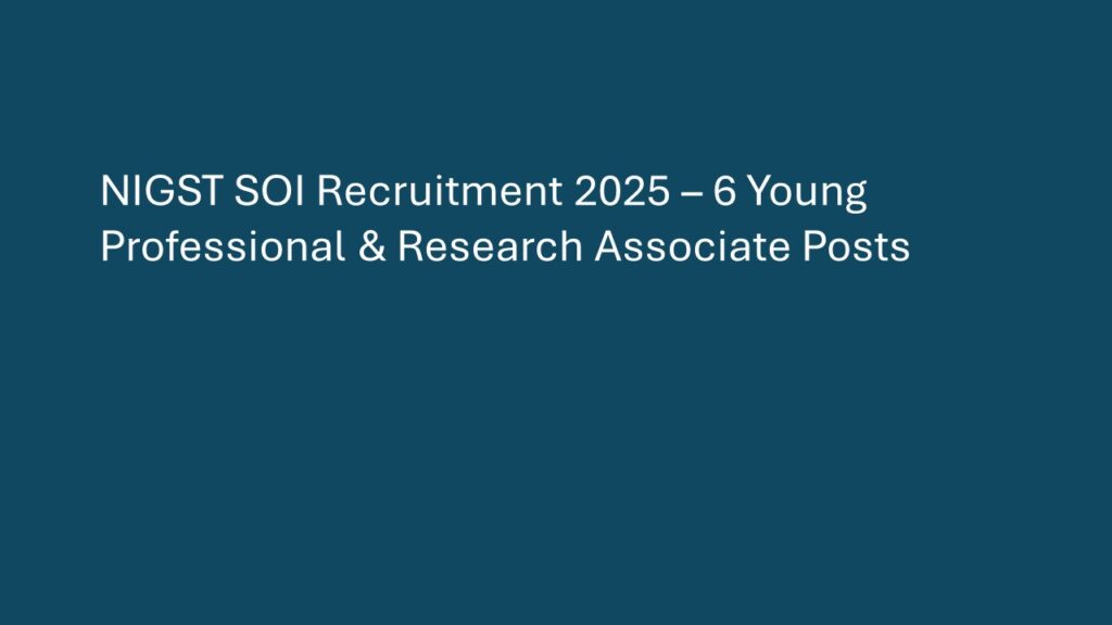 Overview National Institute for Geoinformatics Science and Technology Survey of India (NIGST SOI) is hiring talented professionals for dynamic roles