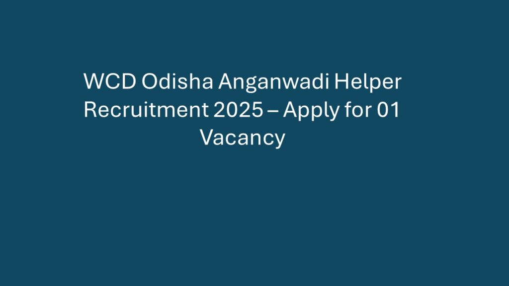 Overview The Women and Child Development Department (WCD Odisha) is hiring an Anganwadi Helper to support child development and welfare