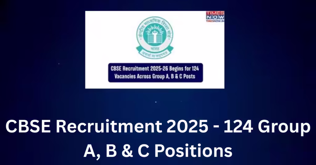Overview The Central Board of Secondary Education (CBSE) is recruiting 124 talented professionals across Group A, B, and C positions.