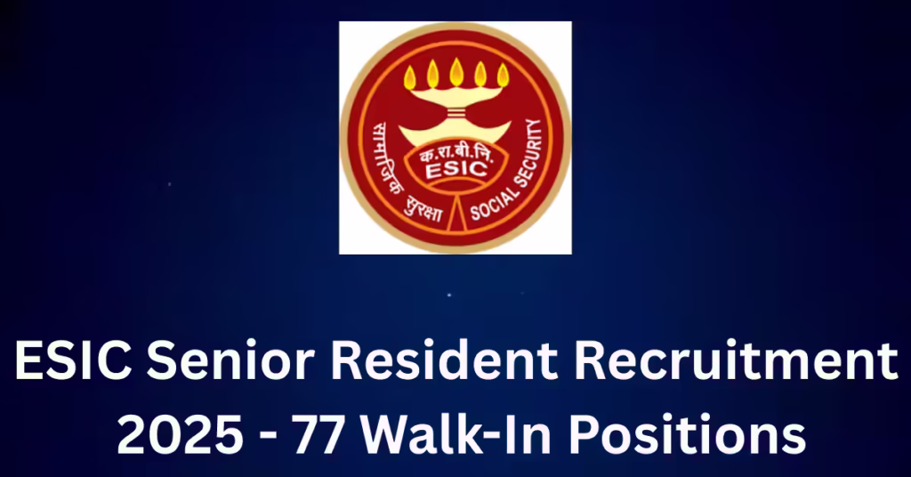 Overview The Employees State Insurance Corporation (ESIC) Medical College & Hospital, Faridabad is recruiting 77 Senior Resident doctors across various