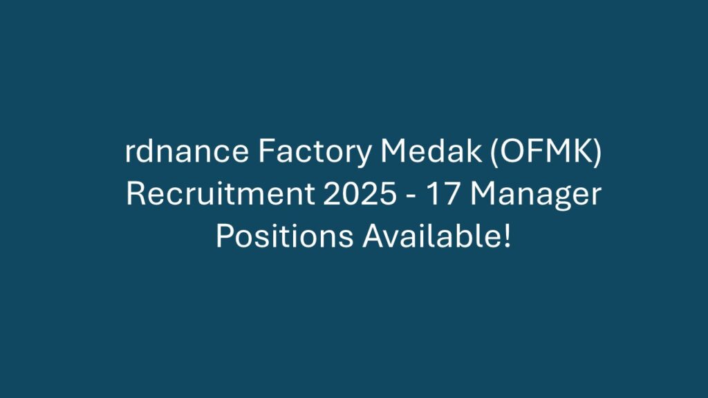 Overview Ordnance Factory Medak (OFMK) is hiring skilled professionals for senior and junior managerial roles! This is an exciting opportunity